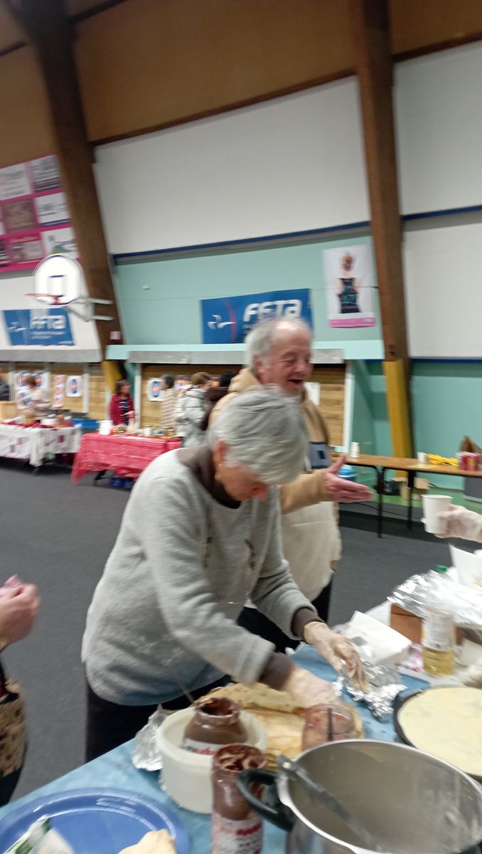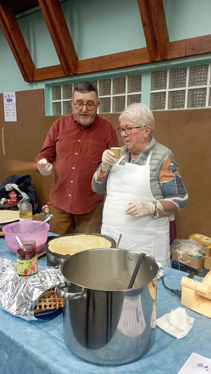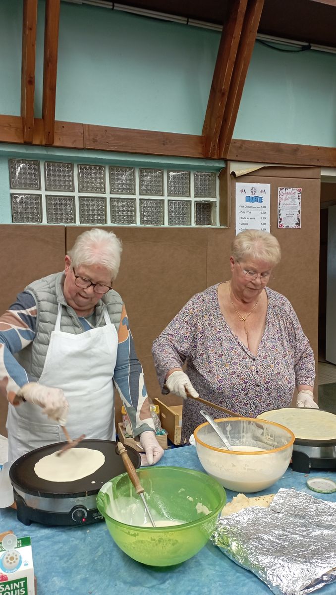 Cette année encore nos adhérents se sont relayés sur le marché de Noël de Courville le 7 décembre de 9h00 à 17h00 pour animer un stand de crêpes, gaufres et vins chauds dont l'intégralité des bénéfices, soit 408,40 €, a été reversée au Téléthon.